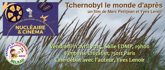 🚨 Organisé et présenté par la Coordination anti-nucléaire d'Ile de France, ce film documentaire de 52 mn sera suivit d'un débat, Rendez-Vous salle EDMP, 8 impasse Crozatier 75012 Paris : Localisation (via RER A et /ou Métros Gare de Lyon, Faidherbe-Chaligny, Reuilly-Diderot, Ledru Rollin). Entrée gratuite, participation bienvenue pour le buffet d'accueil.