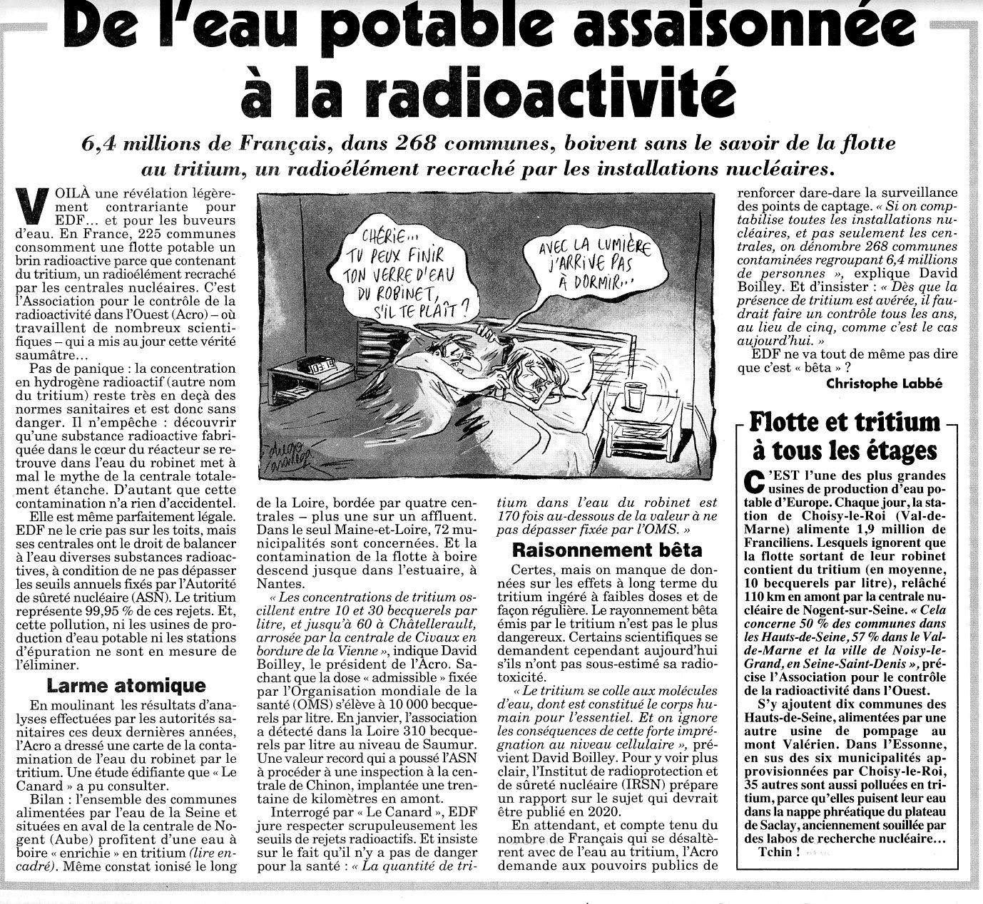 ⛔ « Tritium : halte aux buveurs d'eau déviants » : 24 juillet 2019 - Le Canard Enchaîné