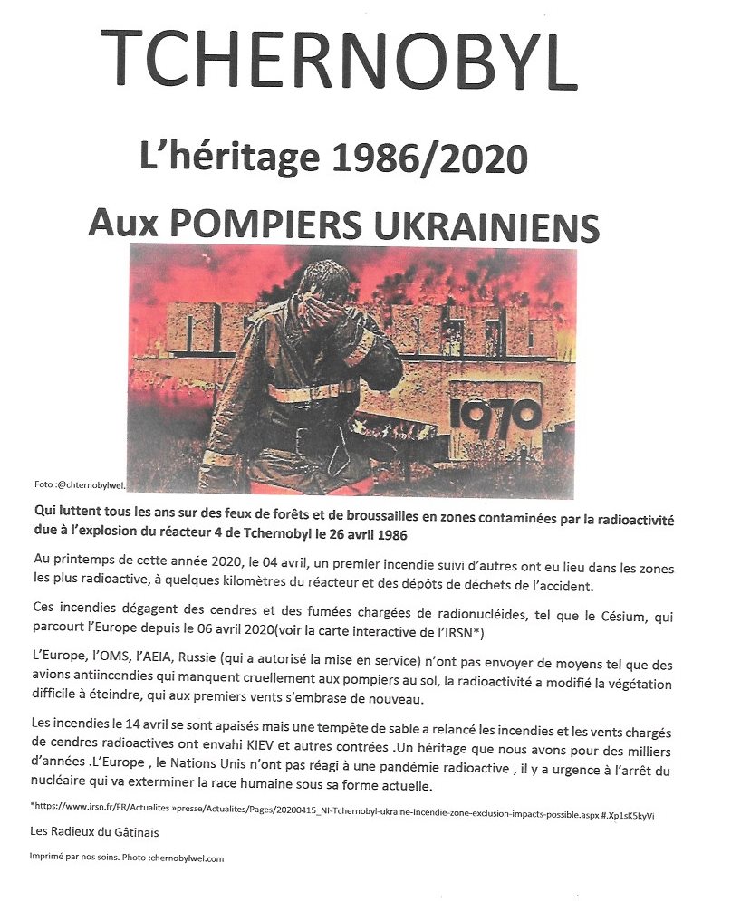 ☢️ « TCHERNOBYL L'héritage 1986/2020 Aux pompiers ukrainiens » : avril 2020 - Les Radieux du Gatinais