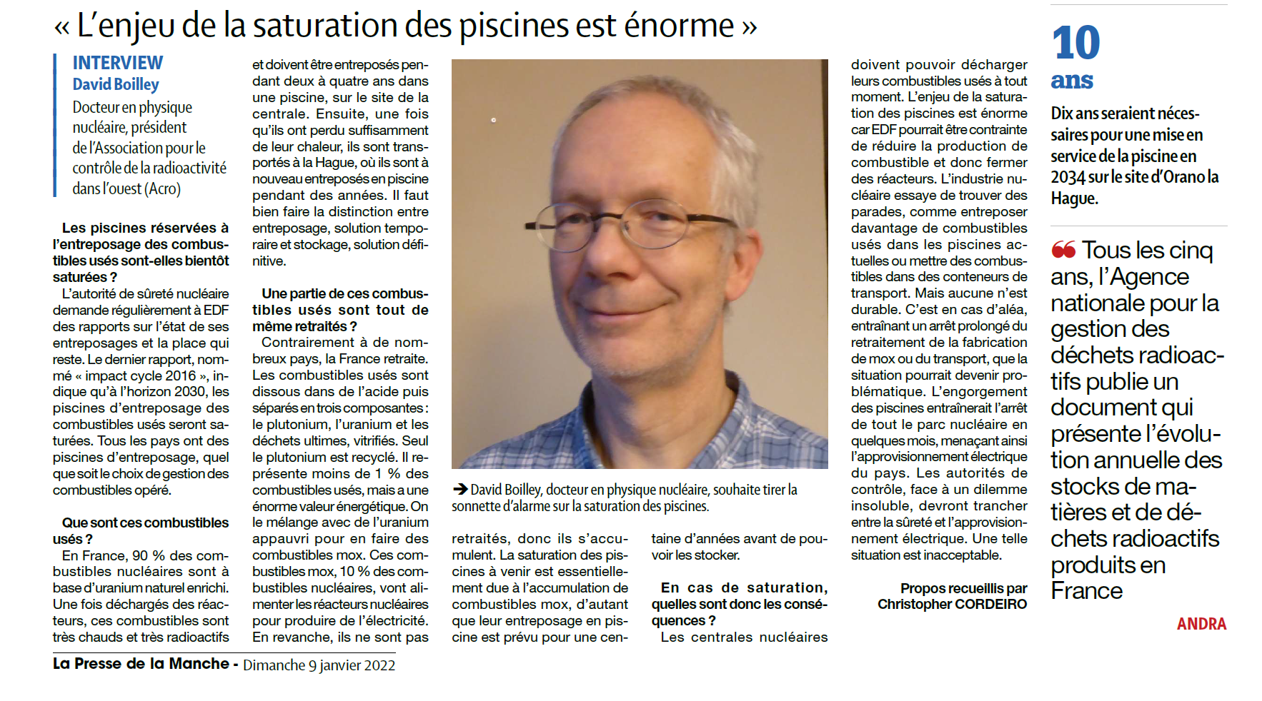 🚫 « Nucléaire : dans la Hague, les opposants se mobilisent contre le projet de piscine EDF » : 7 janvier 2022 - La Presse de la Manche