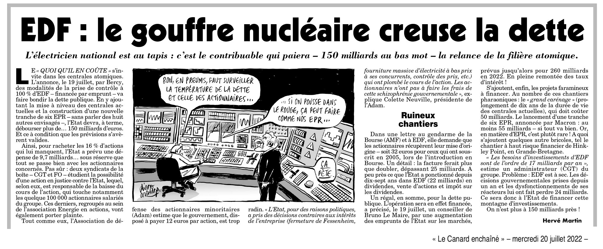 🛠️ précédent déboire... « Ma grosse centrale ne connait pas la crise » : 20 juillet 2022 - Le Canard enchaîné