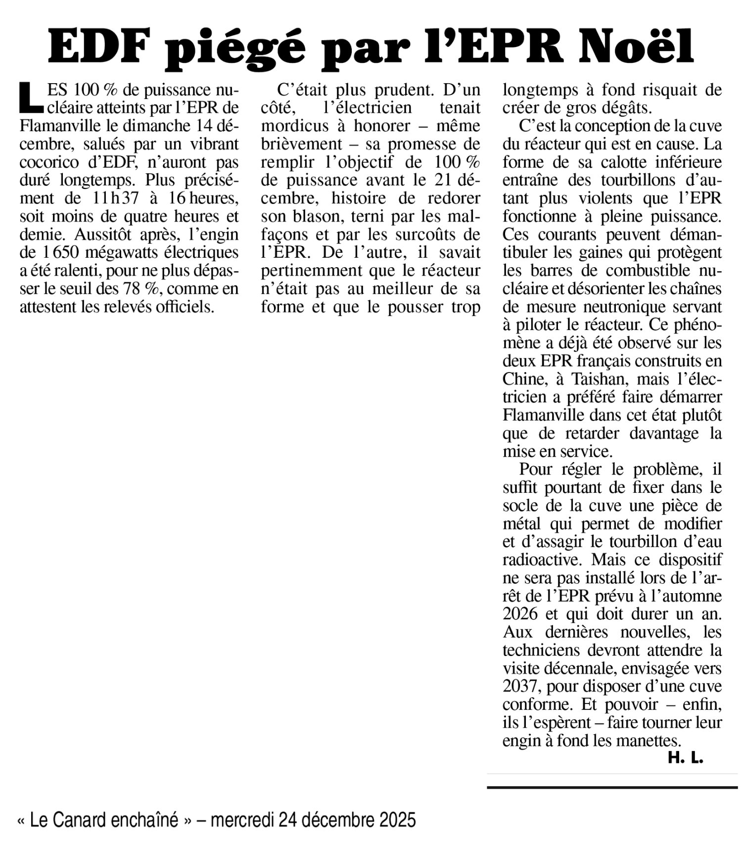 🛠️ « EDF piégé par l'EPR Noël » : 24 décembre 2025 - Le Canard enchaîné