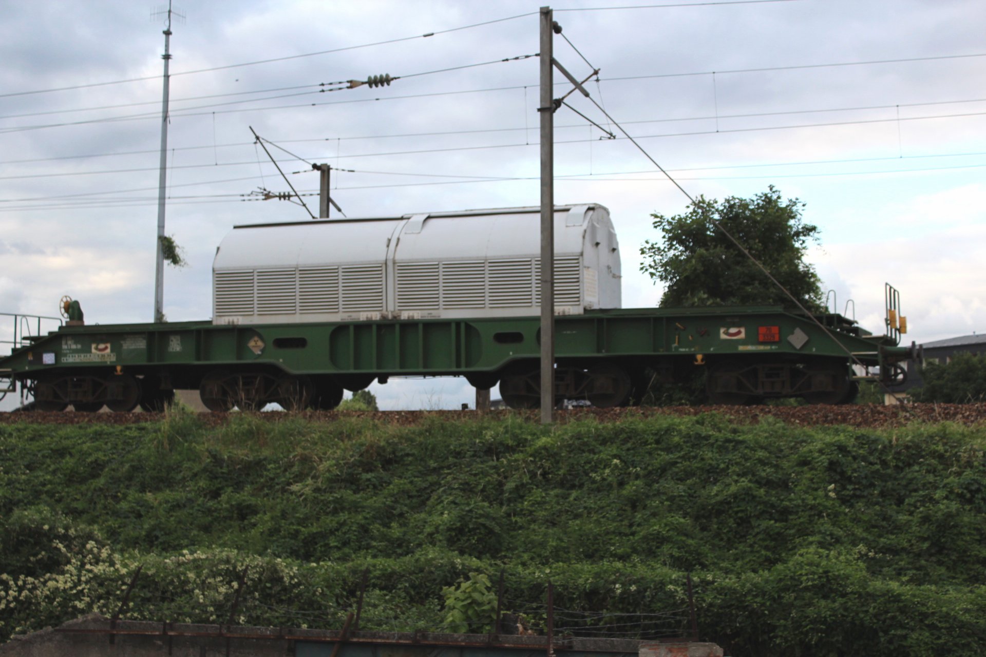 Nous avons remarqué que jusqu'à cette dernière date l'ensemble des convois observés, étaient des assemblages dédiés uniquement au transport des wagons CASTORs, attelés directement derrière la motrice, exposant les conducteurs au plus près de la source radioactive. Le 21 Aout nous avons de nouveau observé un convoi avec des CASTOR directement attelés derrière la motrice.